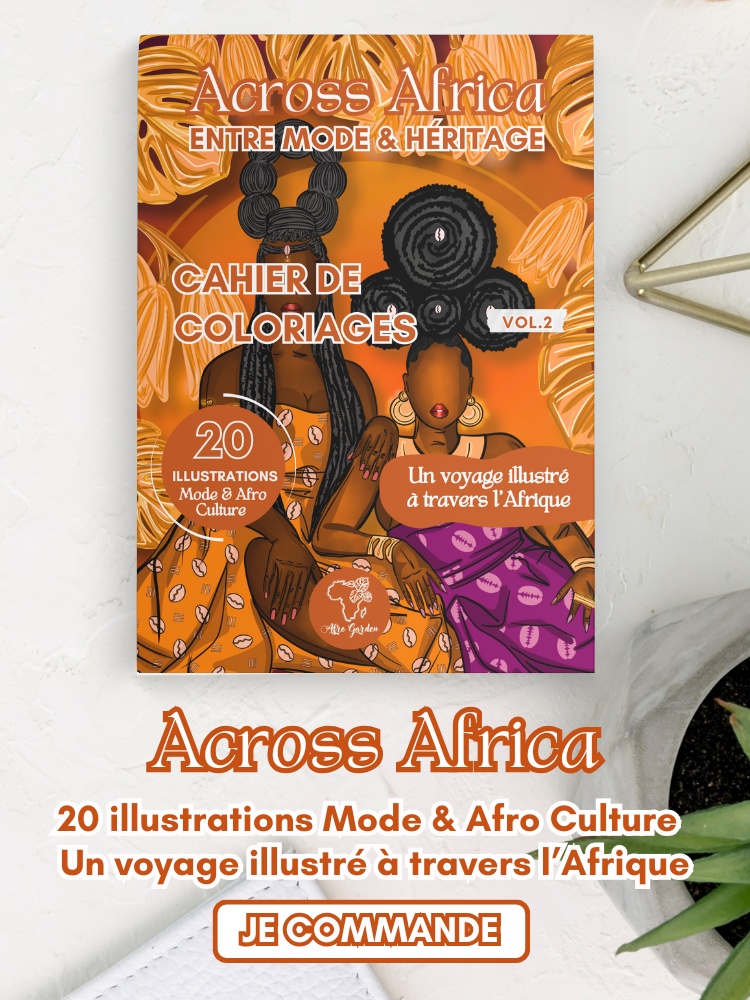 Plongez dans un voyage créatif à travers le continent africain avec “Across Africa : entre mode & héritage”, un cahier de coloriages unique qui célèbre la richesse de l’afro-culture à travers 20 illustrations originales, mettant en lumière des figures féminines et masculines.